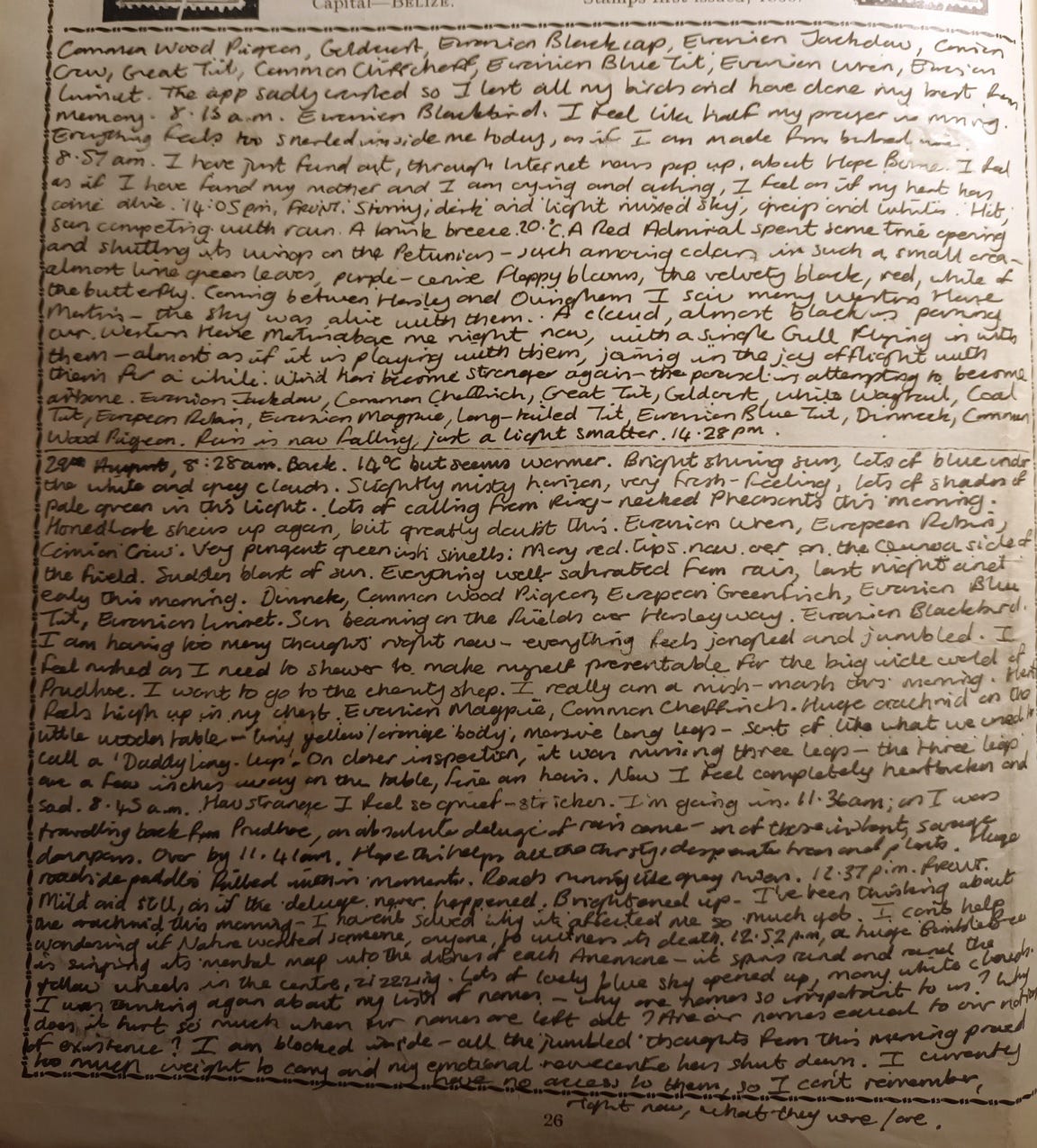 Everything feels too snarled in me today, as if I am made from barbed wire. 8.57 a.m. I have just found out through an internet news pop up about Hope Bourne. I feel as if I have found my mother and I am crying and aching, I feel as if my heart has come alive.