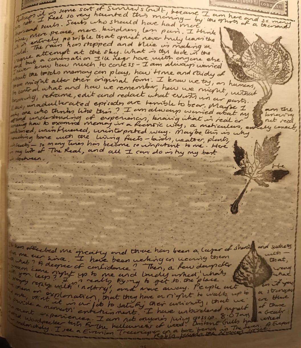 Please note: There now follows a section which I have redacted as it narrates an incident that happened to me a couple of weeks ago. I haven’t felt ready to write about it, but for some reason wished to note it down today (perhaps because I was thinking about memory). I still do not feel ready to make the incident public, so I am redacting it for now.