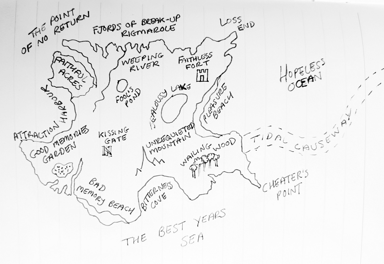 The submerged causeway will magically reveal itself when a critical mass is reached — one of pure joy, or devastating loss. One of unmitigated bliss, devotion, fury, disappointment, arousal, discovery, or excitement. When these feelings occur, access to the island is granted, and you can pretty much pluck seeds for poems from the trees, so ready are they to be begun. There is some troublesome turf to negotiate on this island, so Be Warned. Some of the paths will lead you to Jealousy Lake, Bitterness Cove, Wailing Wood, Unrequited Mountain or the ruins of Faithless Fort. The past is an occluding fog, sickly-sweet and thick as milk. It’s easy to become lost. Be Warned again — the more you come here, the more addicted to it you become. There’s something in the air — some hypnotic taste in your head. It becomes harder and harder to leave Good Memories Garden, easier to pass The Point of No Return.