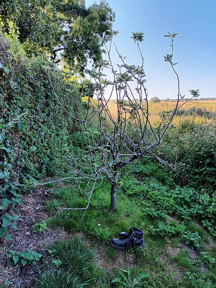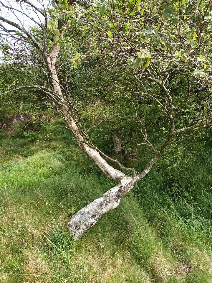 Secondly, was the noticing of an elfin tree. I had written a poem a while ago, as part of an eco-sonnet chain (which can be read here), and research for the poem had led me into a fascination about elfin trees – trees whose growth is reduced by harsher environments. We actually have an elfin apple tree behind our hedge, which has never grown any more in the nine years we have been here, and it was planted years before we came. It is exquisite, just like something from a fairy tale. It is brimming with magic. I found another at this place – an elfin Silver Birch, and I spent some time next to it, sensing some of its own thaumaturgy.