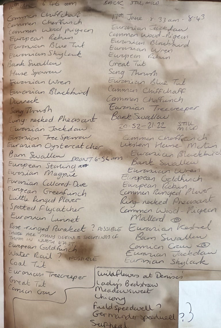 There is a line dividing a section of the page off at the bottom. Because my noticing is getting so much better, I have begun to expand into recording some of the wildflowers I am encountering. I haven’t found and app for free which can help me name plants, so I am doing it the more old-fashioned way, through Internet searching. This is a random-seeming little note, but I wanted to use up some spare space on the page. I go and visit my friend, who has a farm in Stamfordham, and there is an amazing array of wildflowers growing there. I have discovered another hole in my nature knowledge, and in the spirit of learning, I have identified and written down some of them: