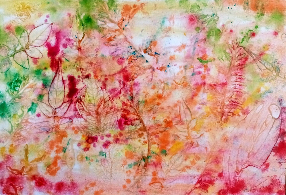 …I wasn’t going to get out today, 20.00 p.m. Black-headed Gull flyby. Carrion Crow. Goldfinch in stout voice tonight. Made some watercolour leaf prints. 20.13 p.m., Yellowhammer, Barn Swallow, Eurasian Kestrel, Eurasian Skylark. So many white butterflies sweeping and swirling over the field. Eurasian Wren, Ring-necked Pheasant, Dunnock. The crop is ripening and full of Pigeons. Bank Swallow? (This I am not sure of) – they are calling plenty. Hear the Skylark’s song and search around the sky until you see its hovering speck 20.41 p.m.